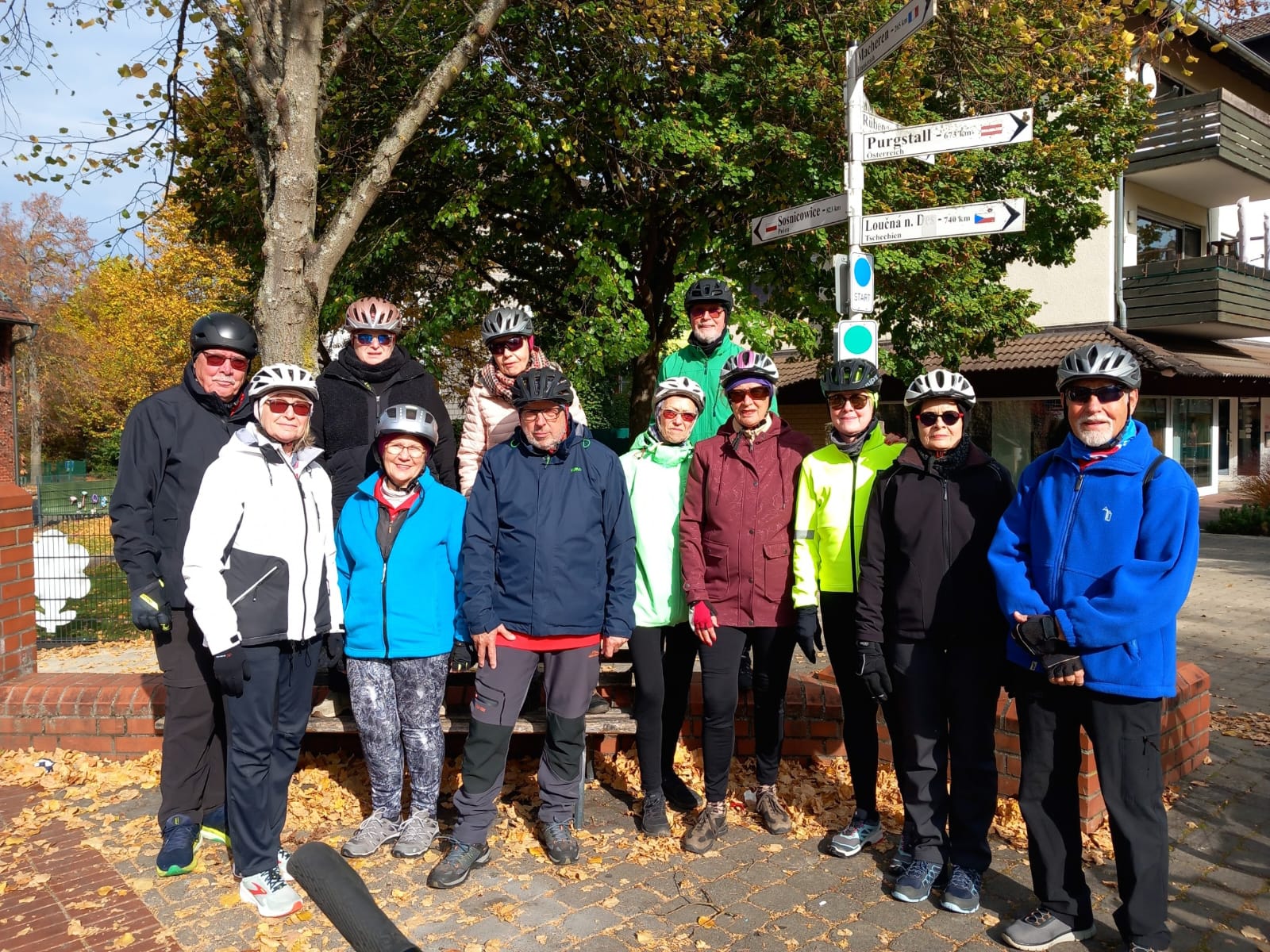 Traditionell startete die Radsportgruppe auch zu ihrer letzten Fahrt in diesem Jahr, wie gewohnt an unserem Rathausplatz. Zunächst in westlicher Richtung gestartet wendeten wir uns dann in nördlicher Richtung der "Badenburg" zu, um kurz vorher zur östlich gelegenen ehemaligen Wellersburg zu fahren. Hier erinnerten sich einige noch gerne an die dortige Gaststätte/Disco "Hazienda". Dem Radweg weiter folgend erreichten wir die ehemalige "Wellersburg" heute Gaststätte "Iridion" und erreichtenüber den Wieseckradweg unser Zwischenziel, die Eisdiele in Großen-Buseck.